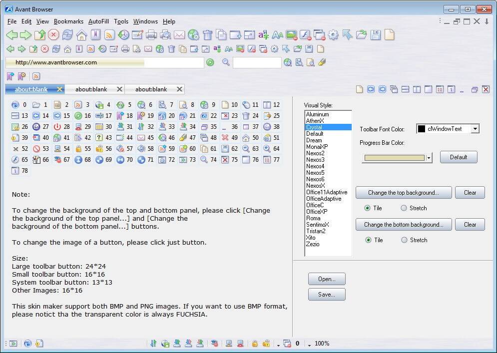 This intuitive, easy to use, and powerful program lets you make your own customized skins for the popular Avant Browser.